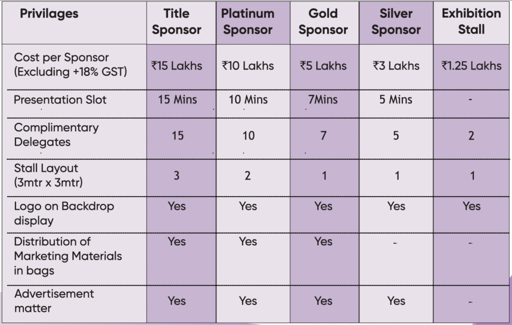 (The above sponsorship amount is excluding GST - Pay GST @ 18%)